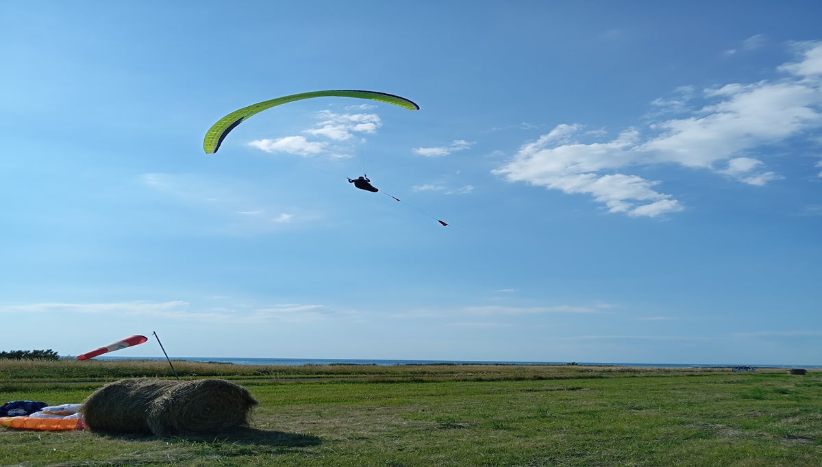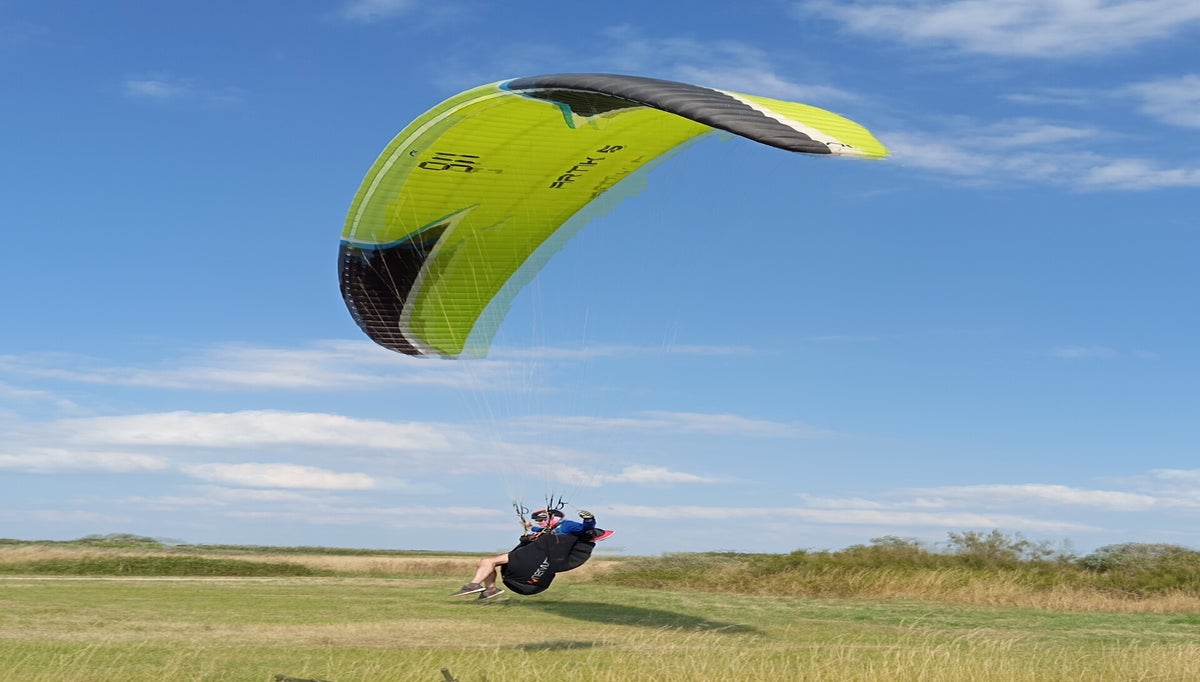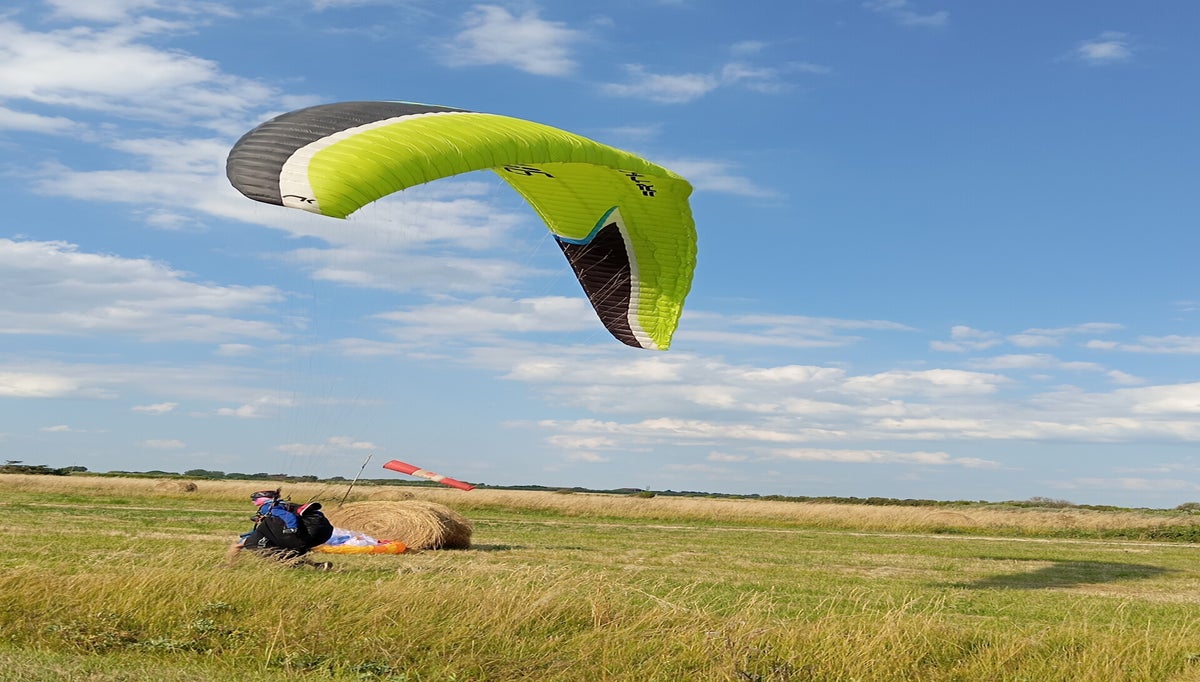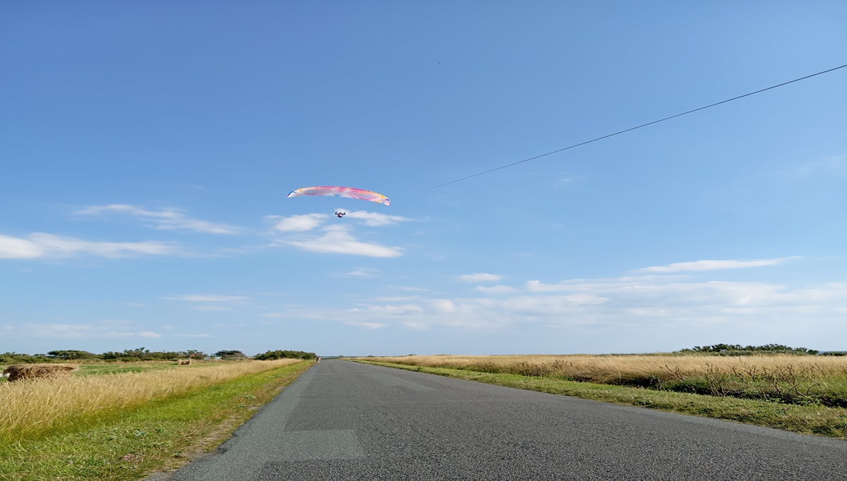 Séances TEST de parapente treuillé sur la route de Chassiron qui longe la falaise.