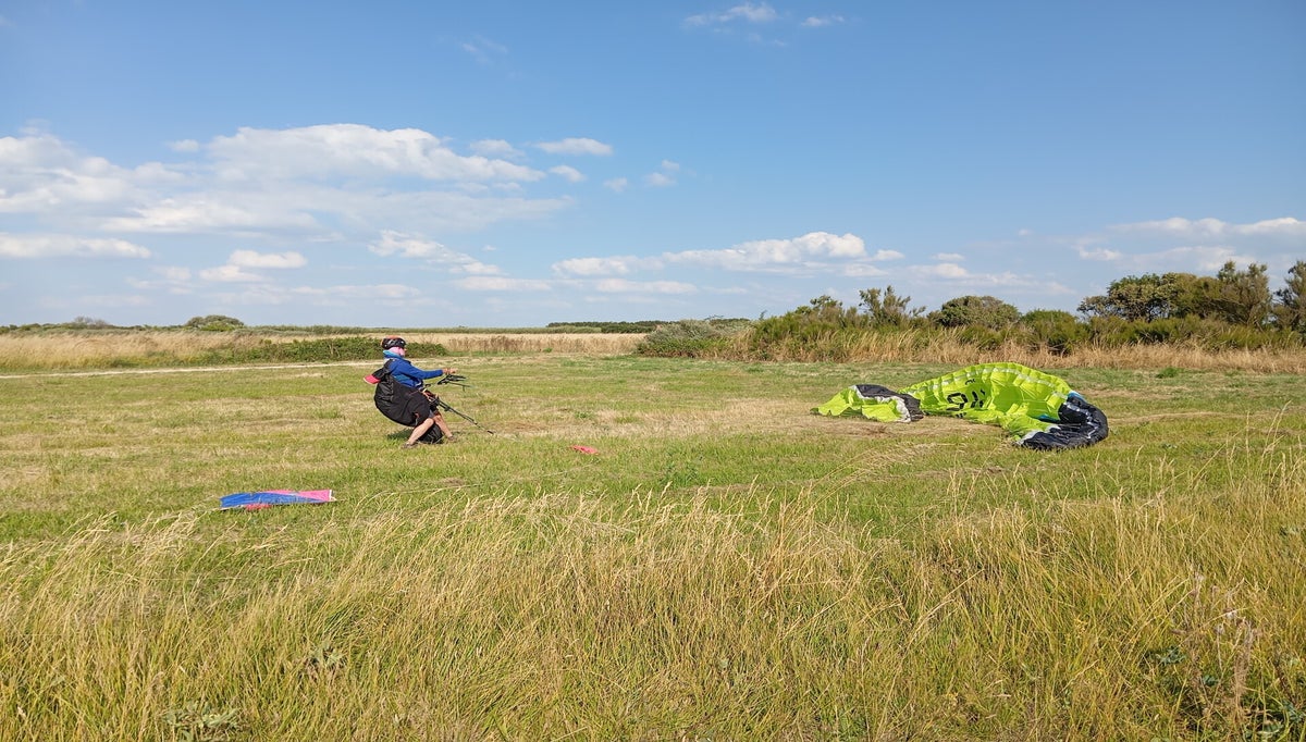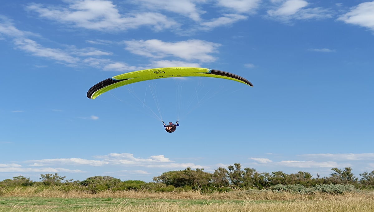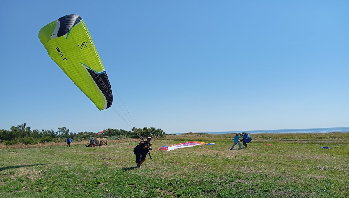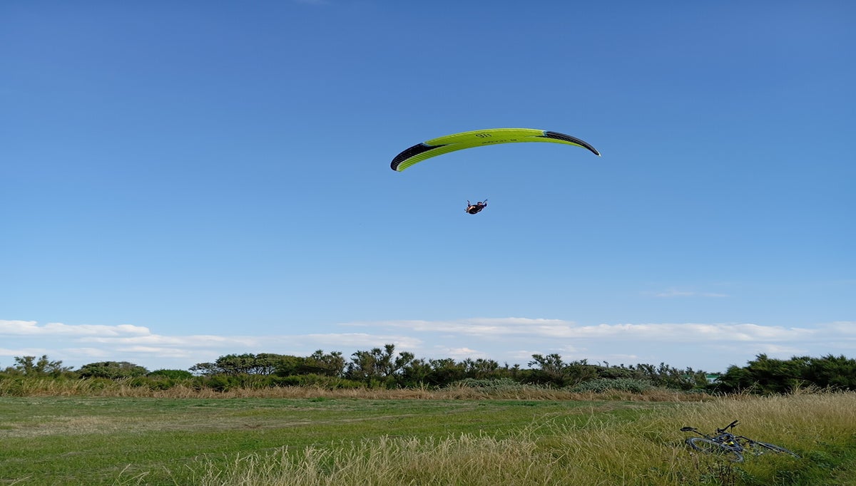 Séances TEST de parapente treuillé sur la route de Chassiron qui longe la falaise.